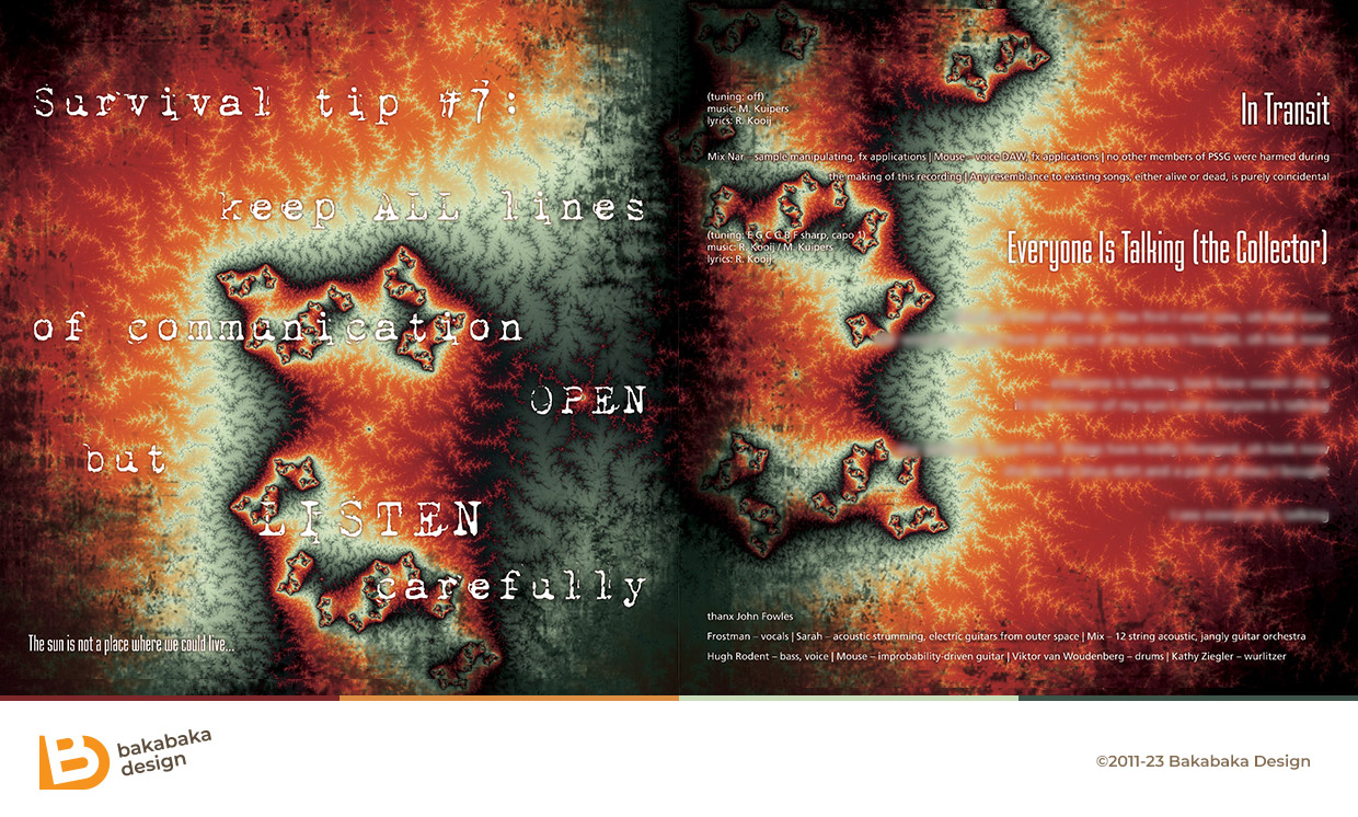 For the record’s cover, I made a ‘Julia’ fractal in black, white and red. This yielded a psychedelic effect that the PSSG members loved. It fit the atmosphere of the music very well.