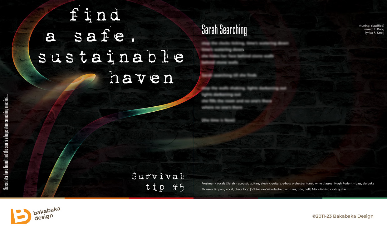 They described it as ‘art rock’ and ‘psychedelic folk’. I just thought it sounded cool. Pole Shift Survival Group wrote an album with the title ‘About the Sun & How the Seasons Change‘. Yup, a classic, physical CD album. Old-fashioned, I know! Rempe, Marnix, Kathy and Maurice asked me to design the artwork for their CD.