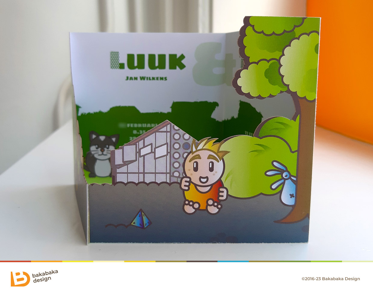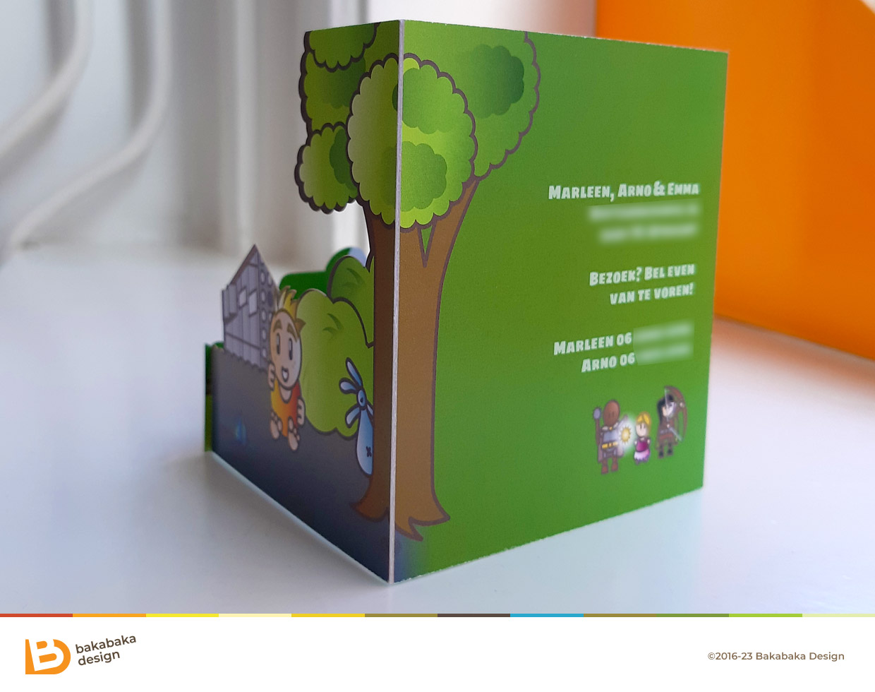 After having their daughter Emma, Marleen and Arno really amped up the family business: they were expecting twins! That meant we had to go bigger and bolder for the baby card. We needed to surpass Emma’s card. How do you make a fitting baby card for twins?