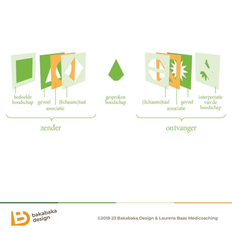 For this book, I created a lay-out, designed the cover, and drew a multitude of diagrams and illustrations. Laurens challenged me, especially with those illustrations. The ‘domains’ I mentioned was only the first one. He also had a rather abstract model about how communication can get muddled between sender and receiver. He asked me to create a clear diagram of that model. I think we succeeded.