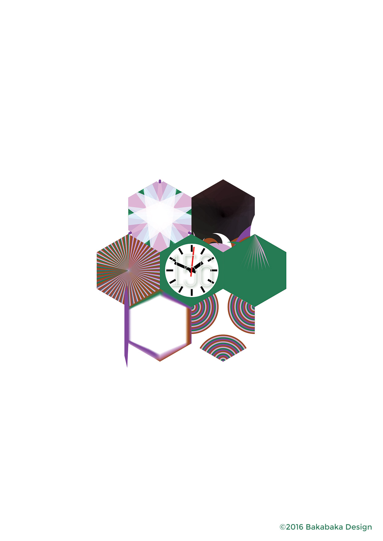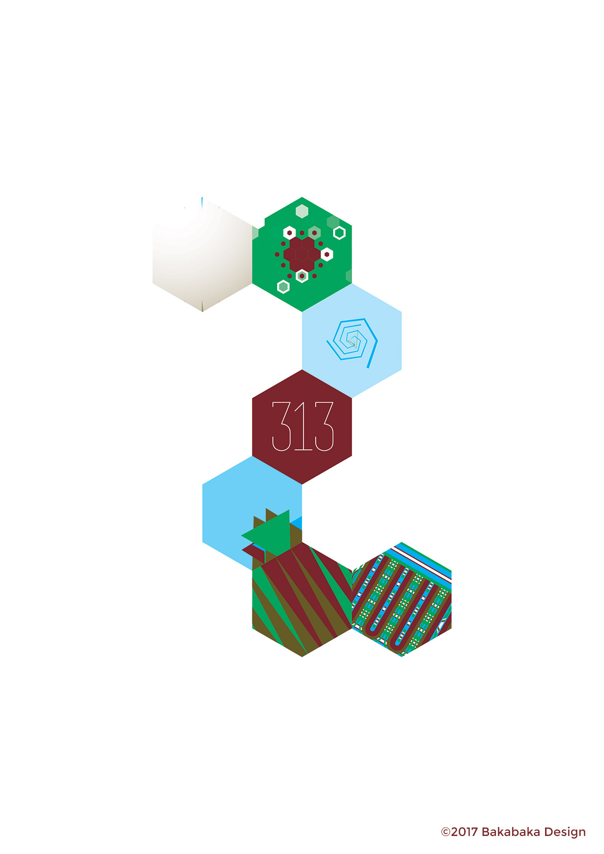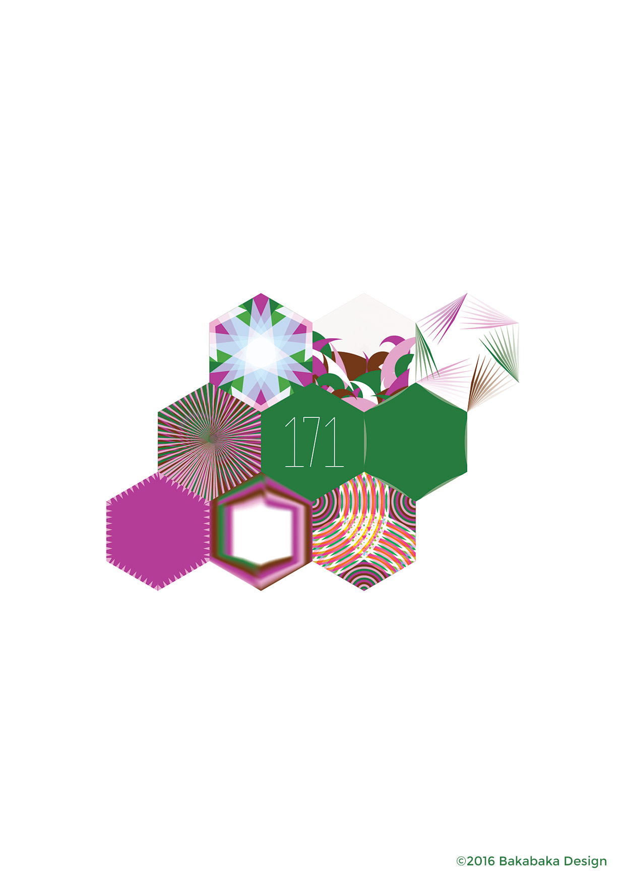 The project tended to surprise me. Lots of the effects I created in the different hexes are logical progressions. Functions in Illustrator, which I tweaked the variables of by a little every day.