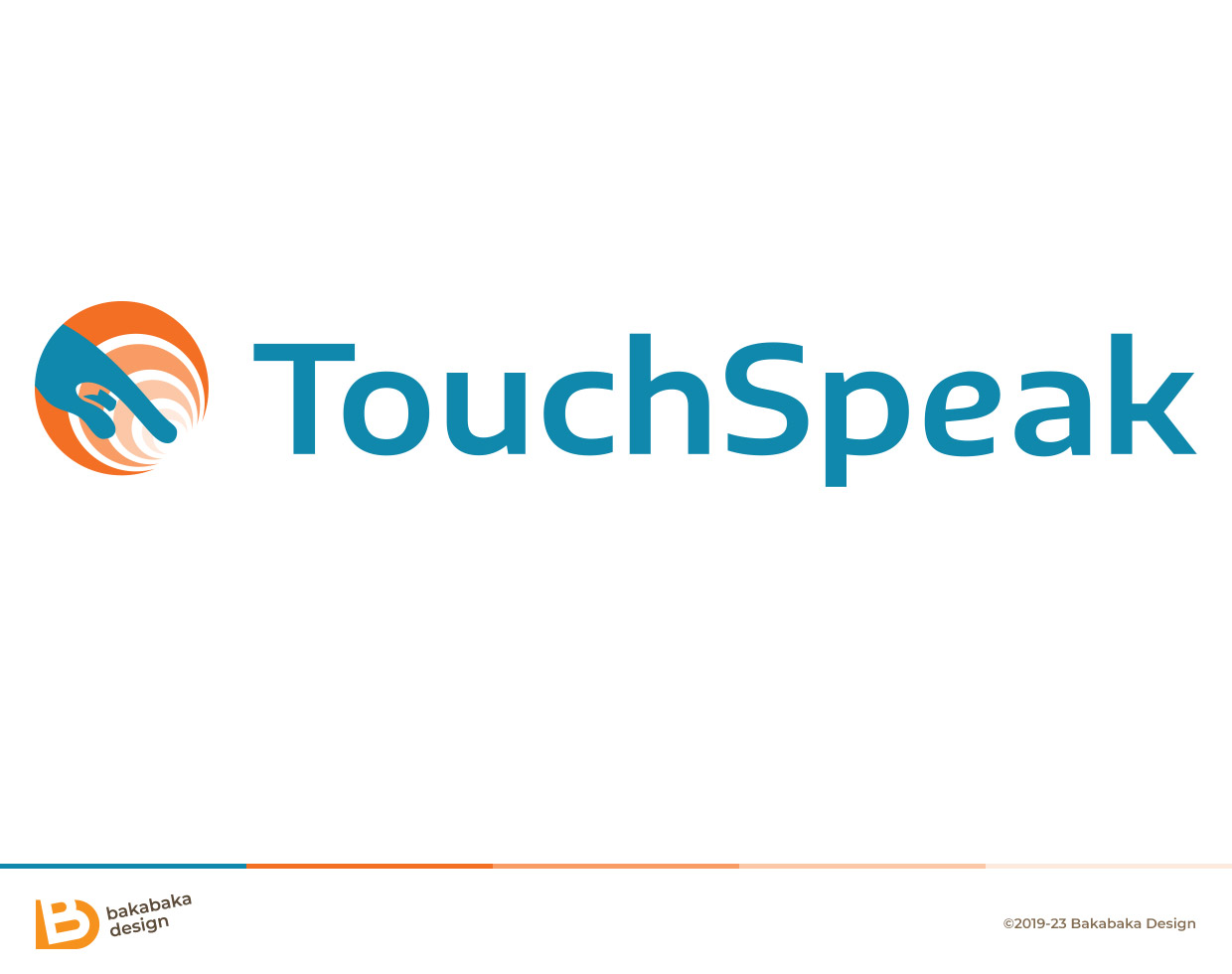 Touchspeak had al een logo, en Hubert vroeg om in het nieuwe hetzelfde concept te behouden: een hand die met de wijsvinger iets aanraakt, wat ‘golven’ tot gevolg heeft. Hiermee vertelt het logo dat het met geluid te maken heeft, en dat je er invloed mee hebt. Golven in het water, als het ware. Hetzelfde concept, maar in een mooier jasje? Kan ik.